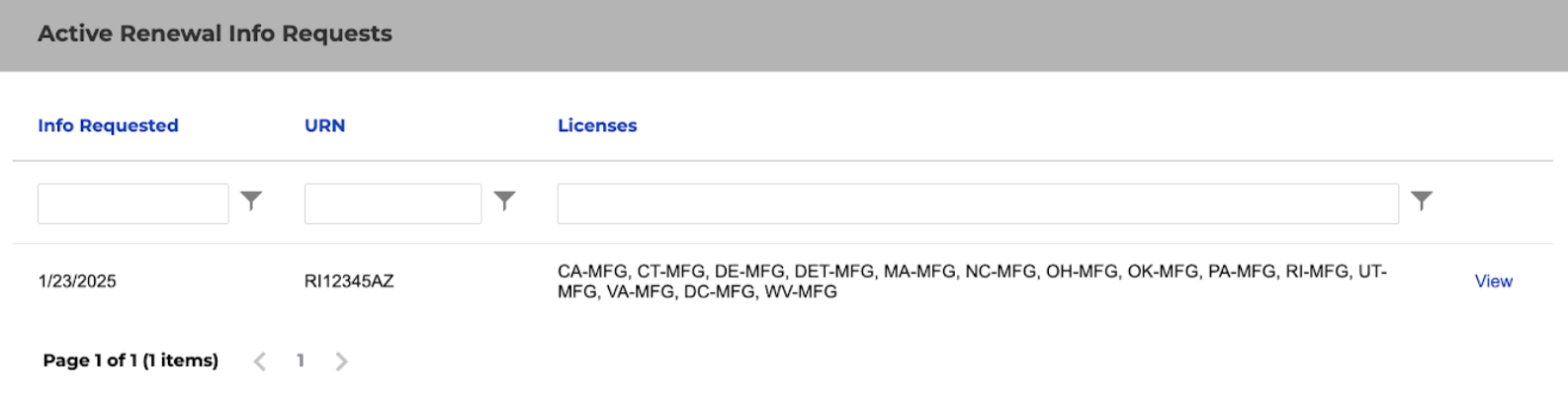 After clicking the Review button, you will see a list of Active Renewal Info Requests.