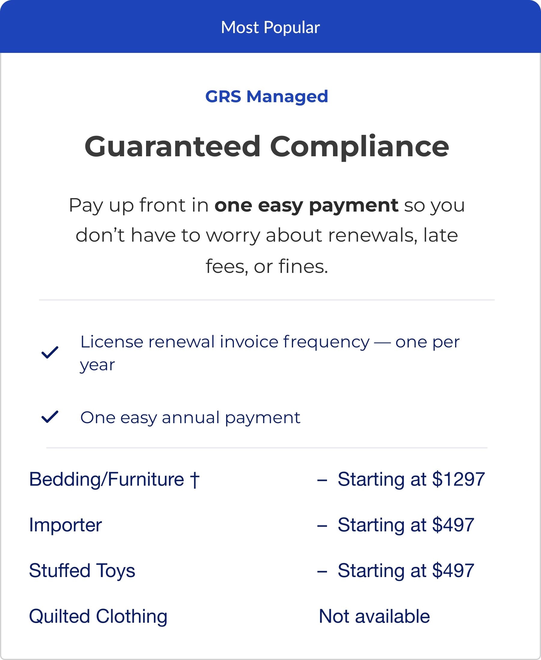 As the first stuffed registration company in the world, GRS combines 50+ years of expertise and relationships with state departments to offer unparalleled support for manufacturers, importers, and retailers of stuffed articles.